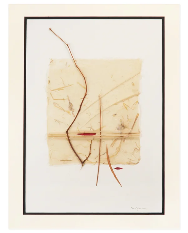 Pleated abaca paper with California eucalyptus, wheat straw and twigs16 x 20, framed