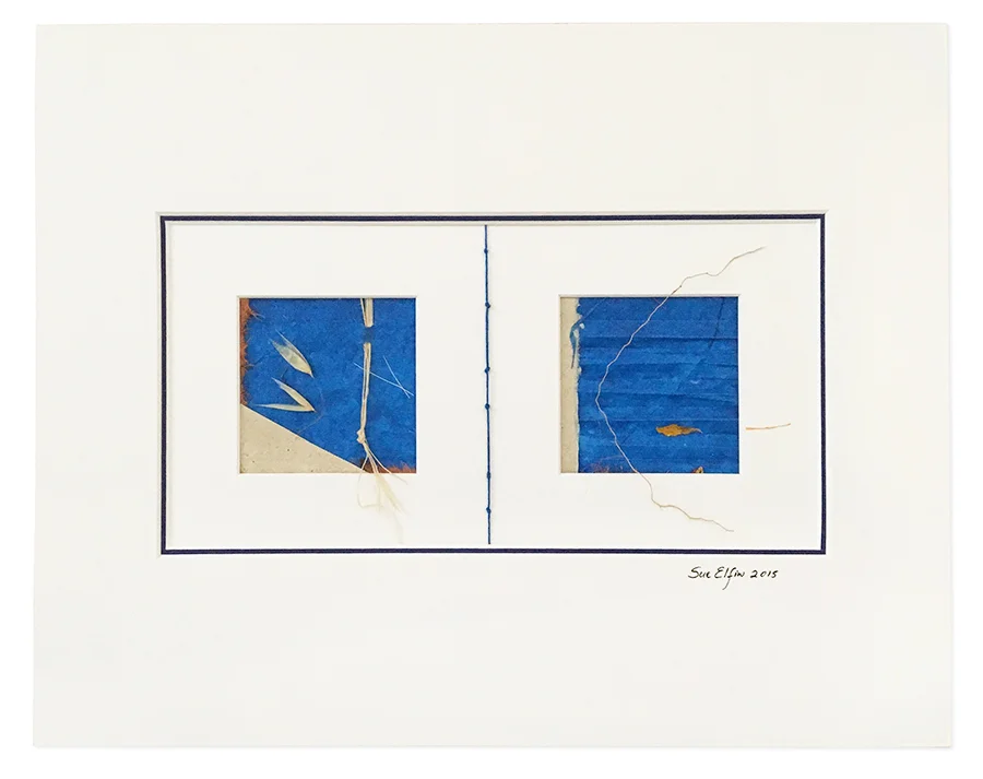 Grasses on handmade abaca and wheat straw papers. Squares are 5 x 5, framed piece 11 x 14