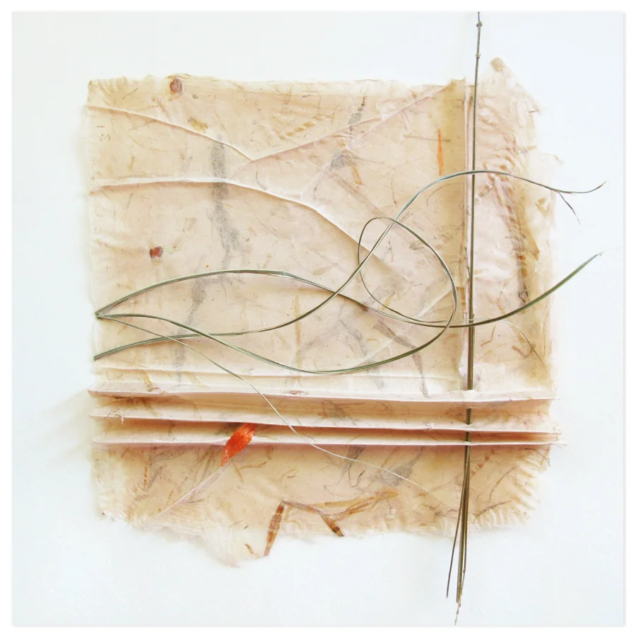 Grasses on pleated abaca with wheat straw inclusions12 x 12, framed