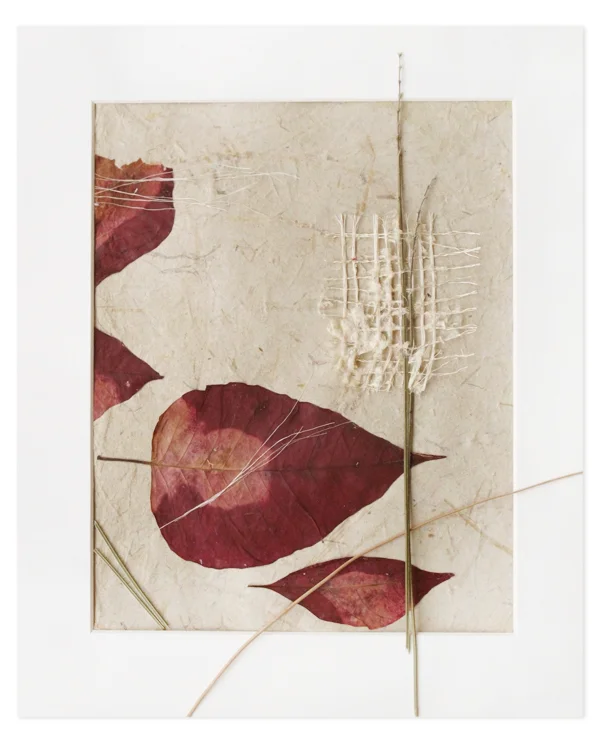 Poinsettia leaves on handmade sisal paper